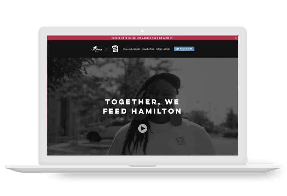 We launched Hamilton Fed, a wearable fundraiser featuring artwork by local artist Tessa Presta. Every shirt sold funded weekend meals for kids. The campaign kicked off with a high-energy brand video and gained momentum through social media, local influencers, and community partners, making it easy for anyone to get involved.